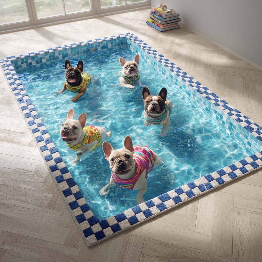Playful French Bulldog Area Rug — Charming Deep-Dive Pup Design, Soft Durable Accent Rug For Nursery, Living Room & Pet Lovers