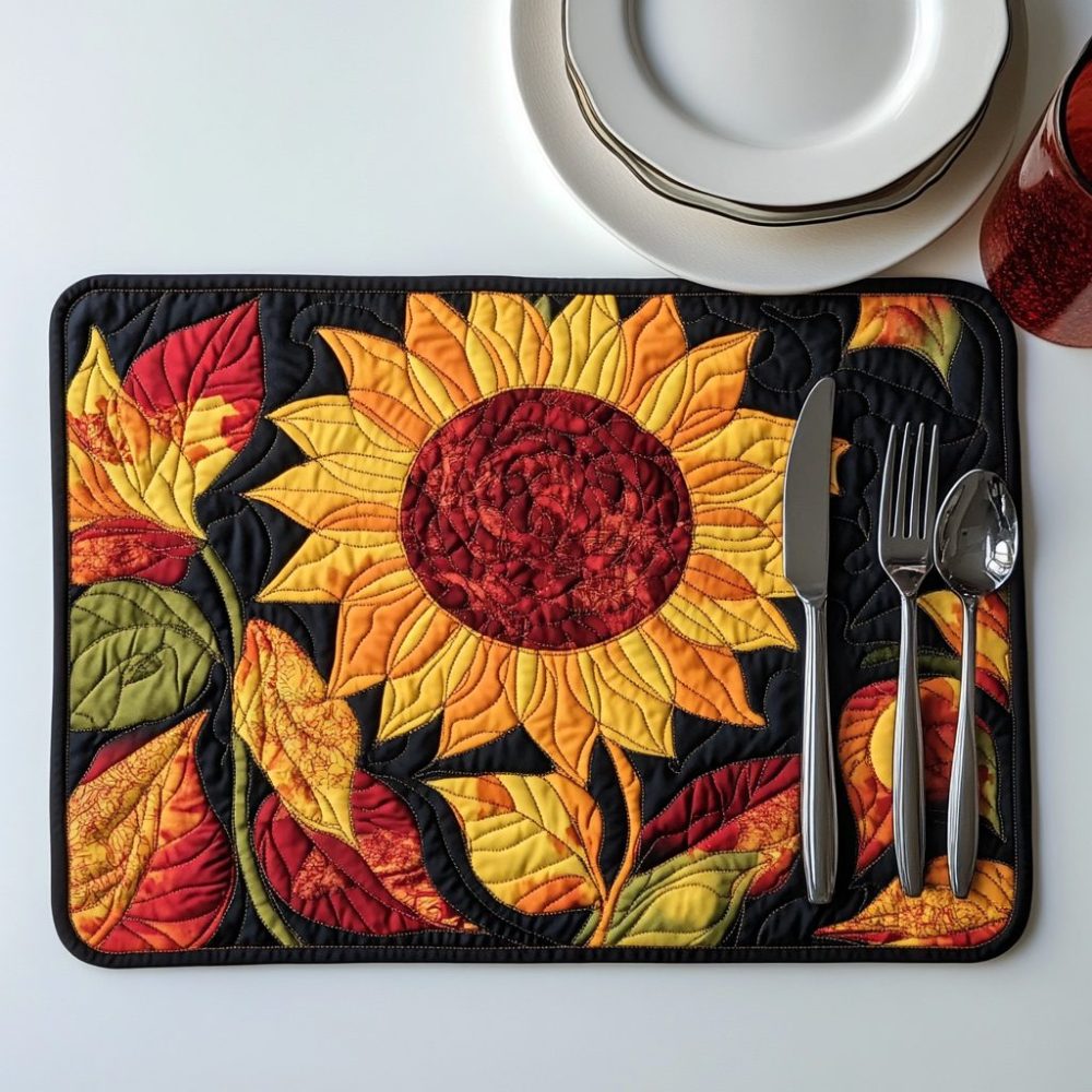 Playful Sunflowers Kid-Friendly Quilted Placemat – Cheerful Floral Design, Soft Cotton, Machine Washable & Stain-Resistant Table Protector