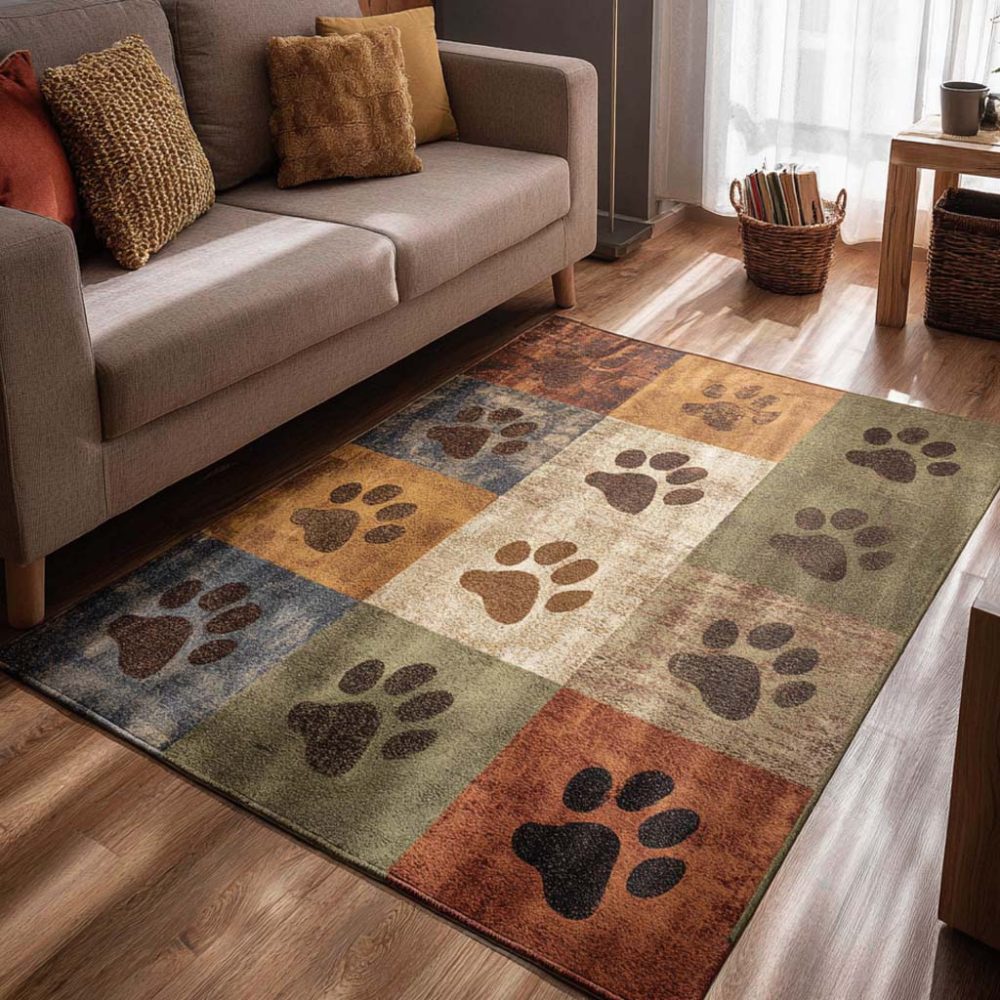 Plush Autumn Paw-Print Area Rug — Fall Colors Decorative Rug, Pet-Friendly Non-Slip Washable Accent For Living Room