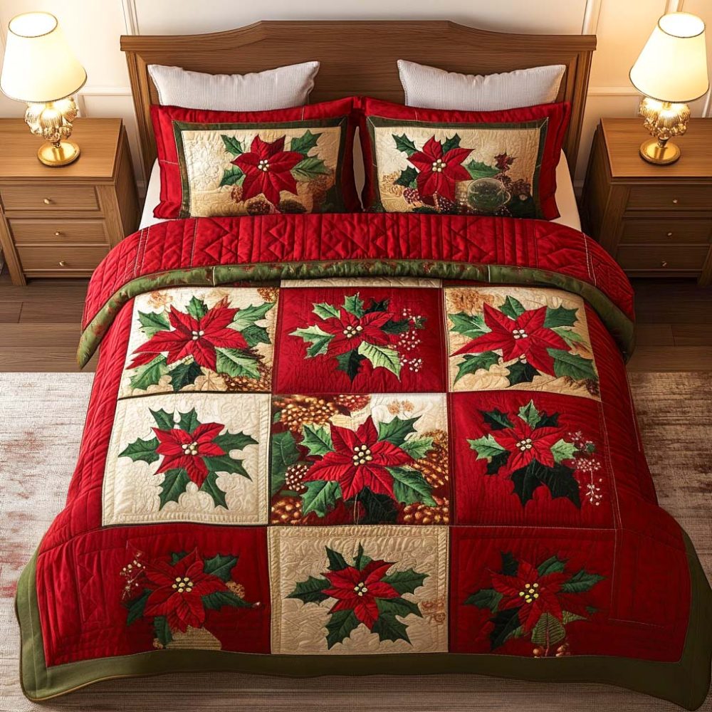 Poinsettia Elegance 3-Piece Quilted Bedding Set