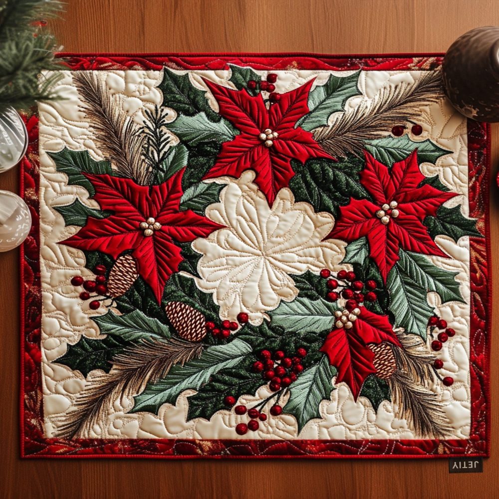 Poinsettia Glow Holiday Quilted Placemat – Festive Christmas Table Mat With Poinsettia Pattern, Elegant Seasonal Dining Decor, Washable