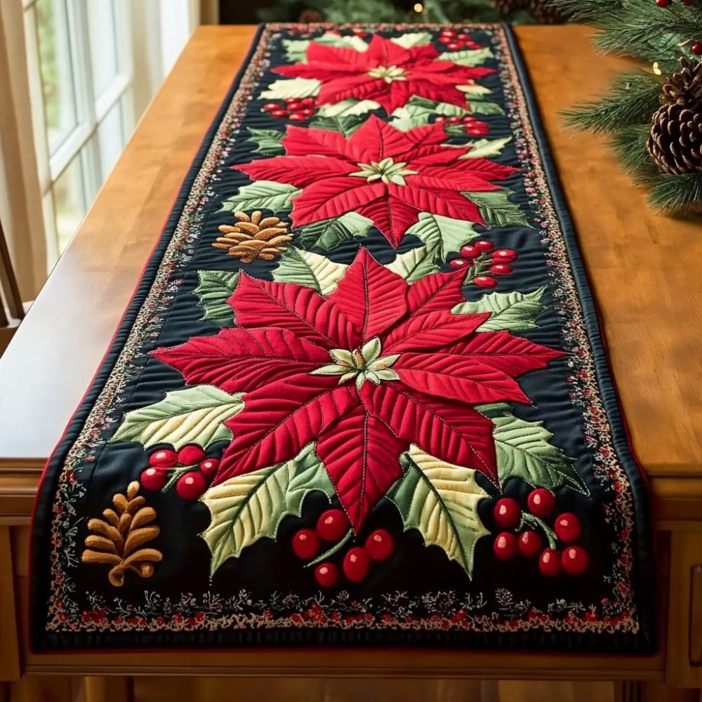 Poinsettia Light Quilted Table Runner