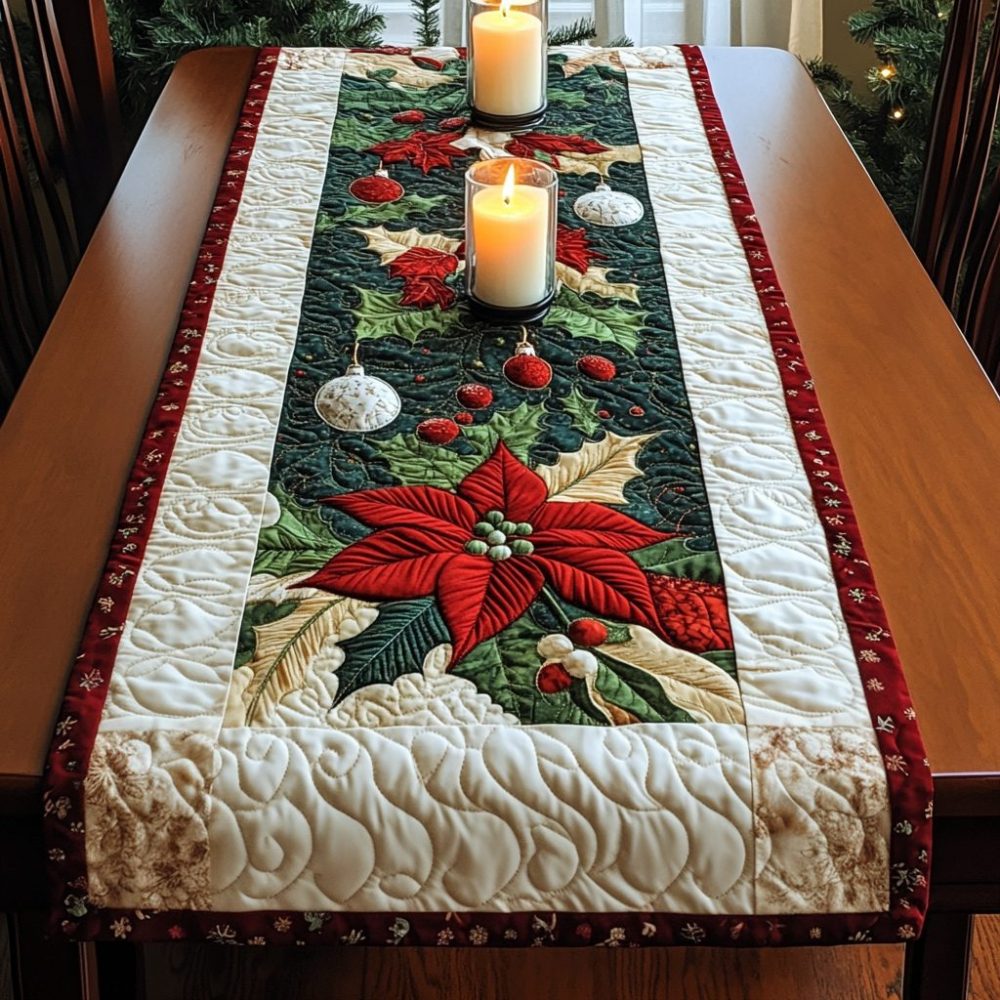 Poinsettia Parade Quilted Table Runner
