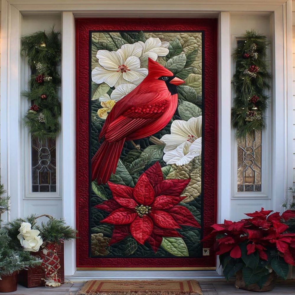 Poinsettia Porch Guardian Quilted Door Cover