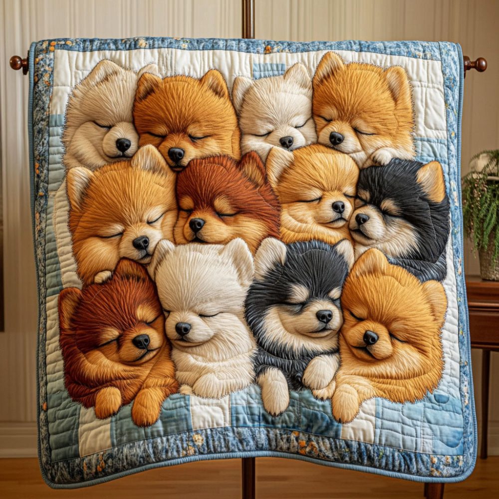 Pomeranian Snuggle Time Quilted Blanket