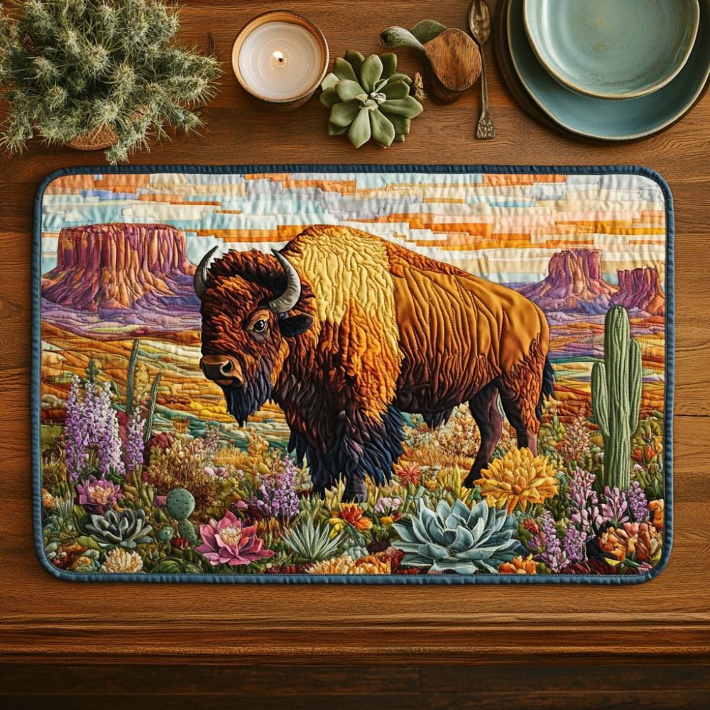 prairie placemat, quilted placemat, earthy tones placemat, heat-resistant placemat, machine washable placemat, farmhouse table decor, country dining
