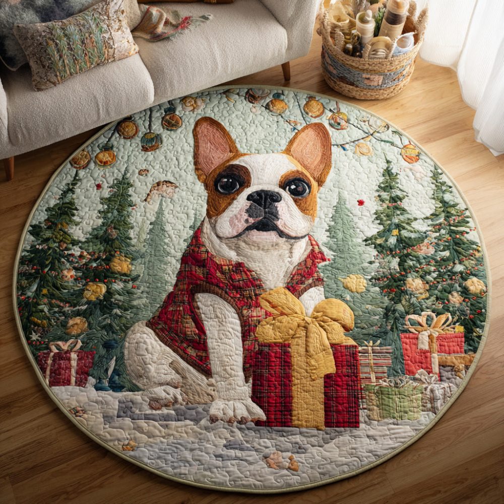 Present-Holding Bulldog Quilted Round Mat