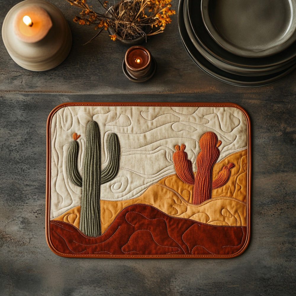 prickly charm placemat, cactus placemat, quilted table mat, washable placemat, novelty table decor, heat resistant placemat
