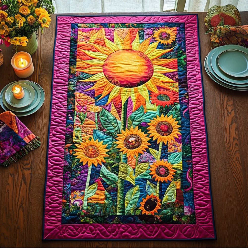 Psychedelic Garden Quilted Table Runner