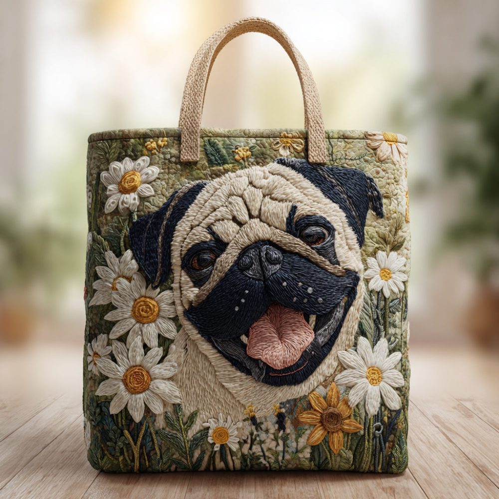 Pug In Daisies Quilted Tote Bag