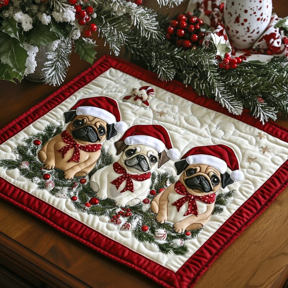 Showcase your love for pugs with this adorable pug-face quilted placemat. Constructed from cushioned cotton quilting with a firm non-slip backing, it offers both protection and playful style. Easy to clean and gift-ready—perfect for pug owners, pet-themed parties, or everyday dining fun.