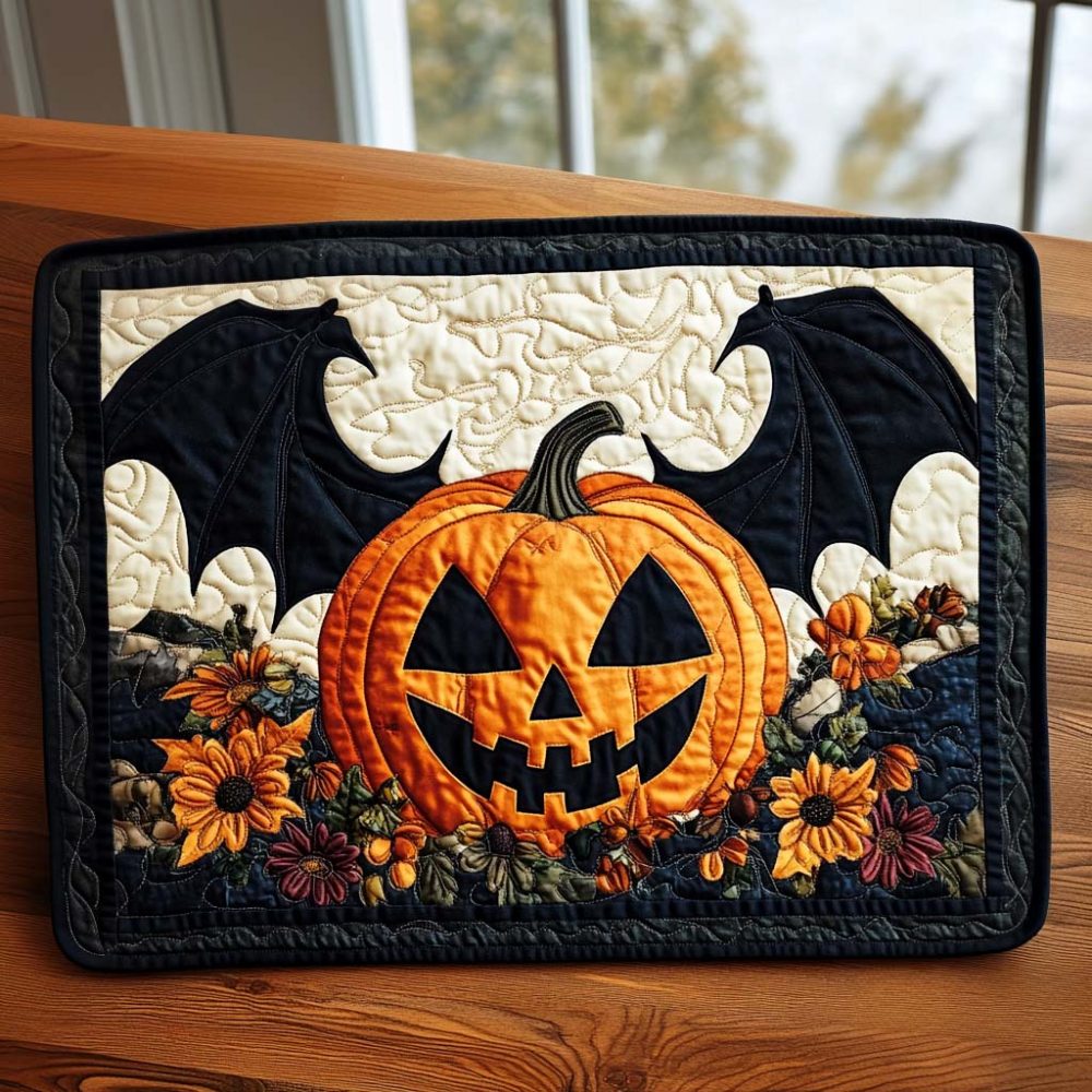 Pumpkin Bat Quilted Placemat — Festive Halloween Design, Insulated Table Protector, Machine-Washable Dining Accent For Spooky Season