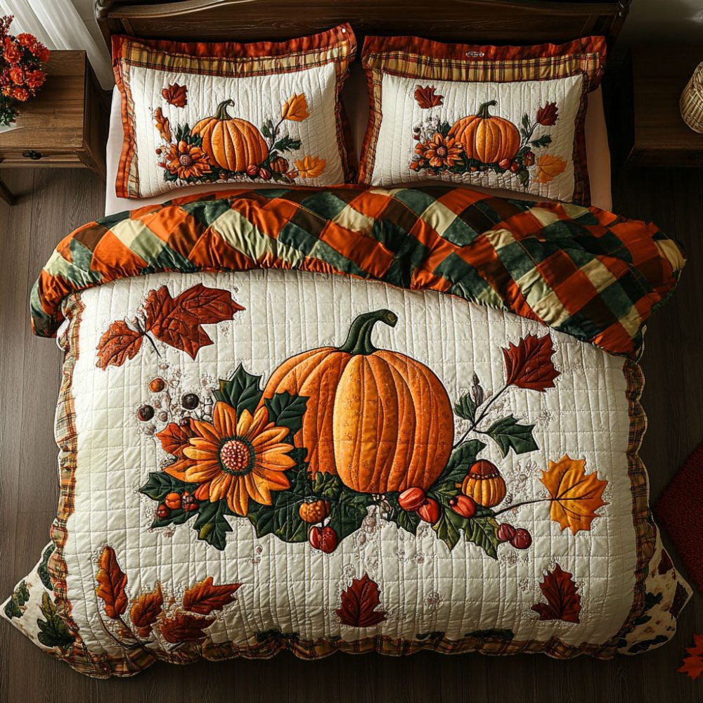 Pumpkin Harvest 3-Piece Quilted Bedding Set