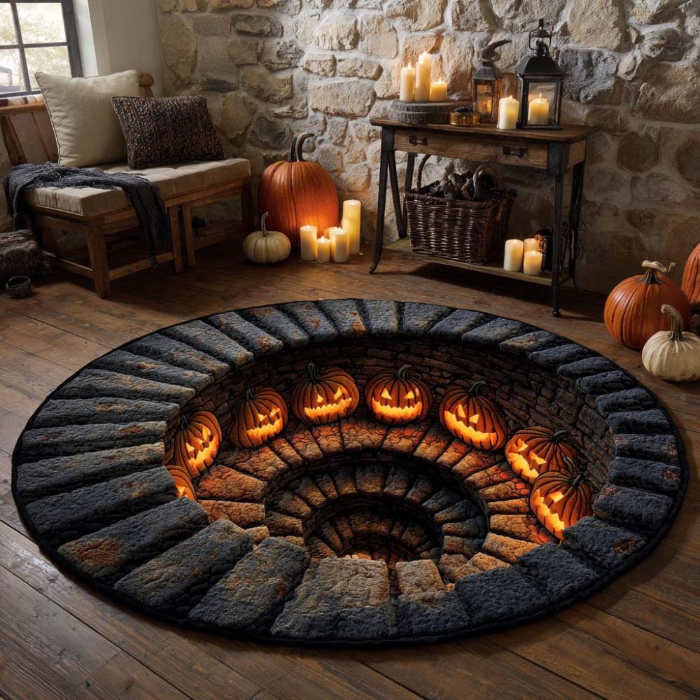 Pumpkin Spiral Dungeon Quilted Round Mat