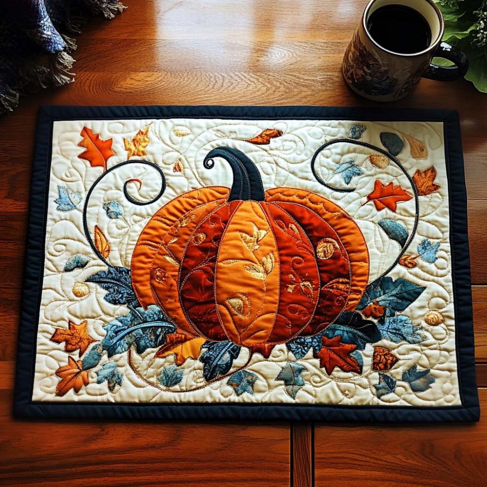 pumpkin placemat, fall table decor, quilted placemat, autumn table accent, Thanksgiving placemat, washable table mat, seasonal table linen