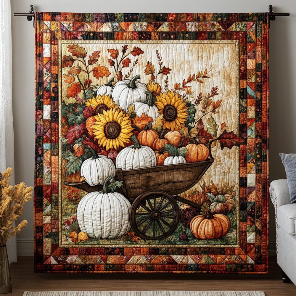Pumpkin Wheelbarrow Quilted Blanket