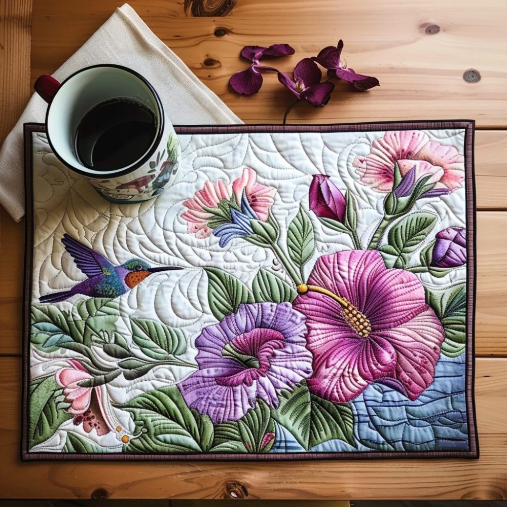 Purple Hummingbird Flowers Quilted Placemat — Vibrant Floral & Bird Table Accent, Soft Quilting, Machine-Washable, Perfect Gift For Garden Lovers