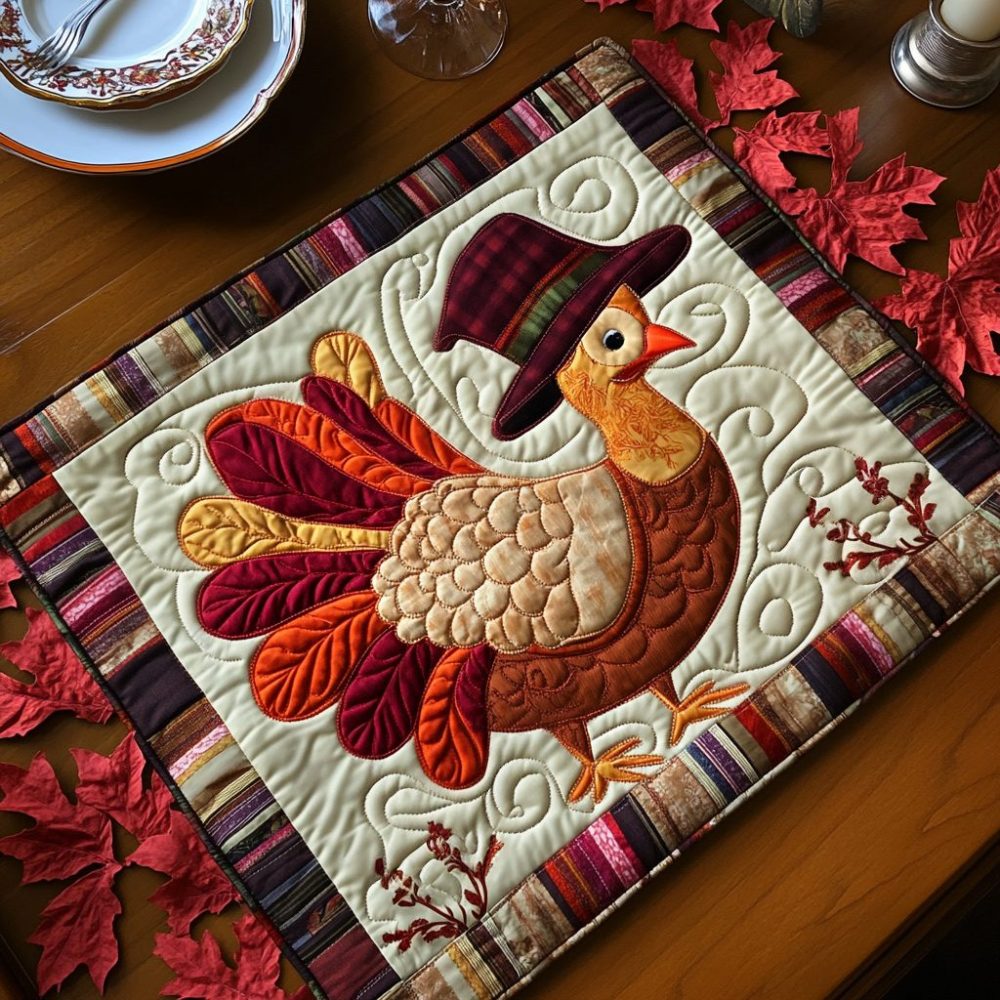 purple turkey placemat, Thanksgiving placemat, quilted placemat, farm-themed table decor, machine washable placemat, cotton blend, holiday table accessory
