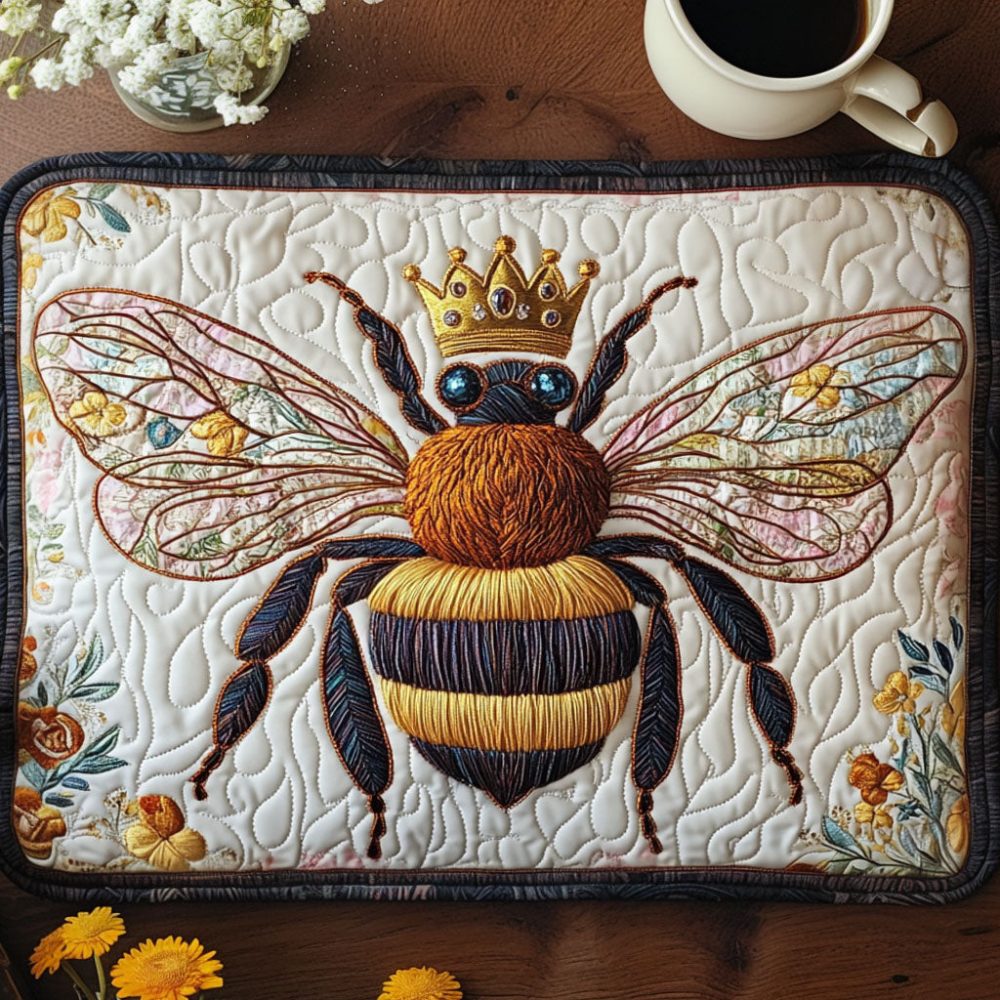queen bee placemat,quilted placemat,luxury placemat,gold black table mat,elegant table decor,dining placemat,washable placemat