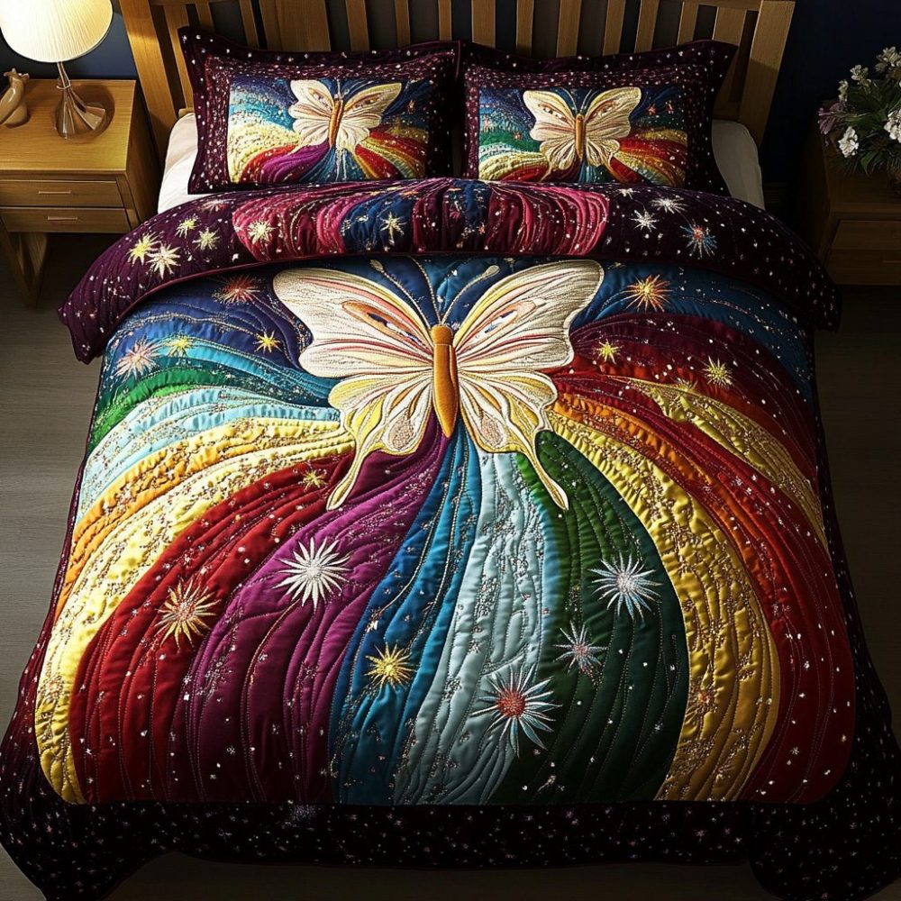 Radiant Butterfly 3-Piece Quilted Bedding Set