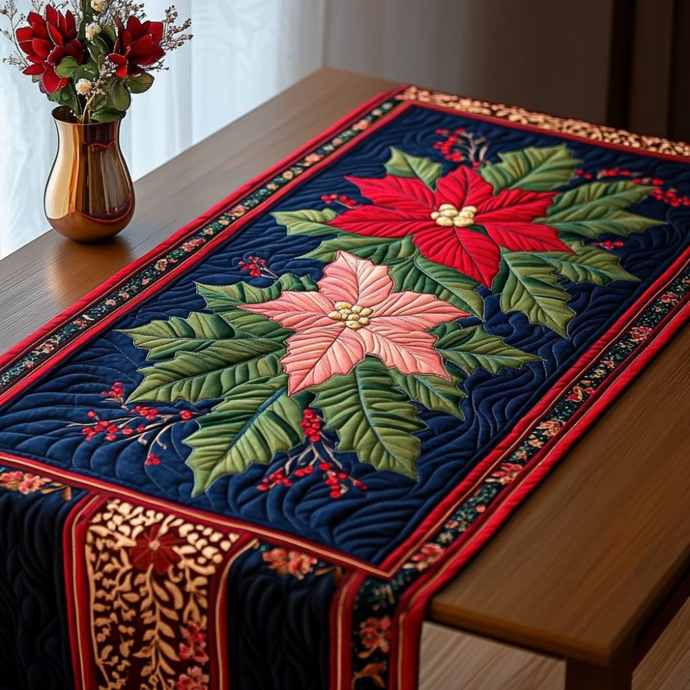 Radiant Poinsettia Blossom Quilted Table Runner