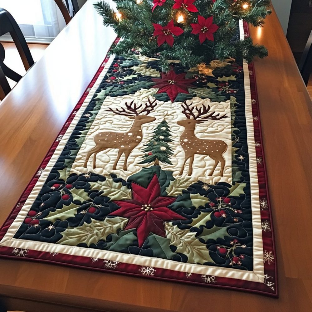 Radiant Reindeer Quilted Table Runner