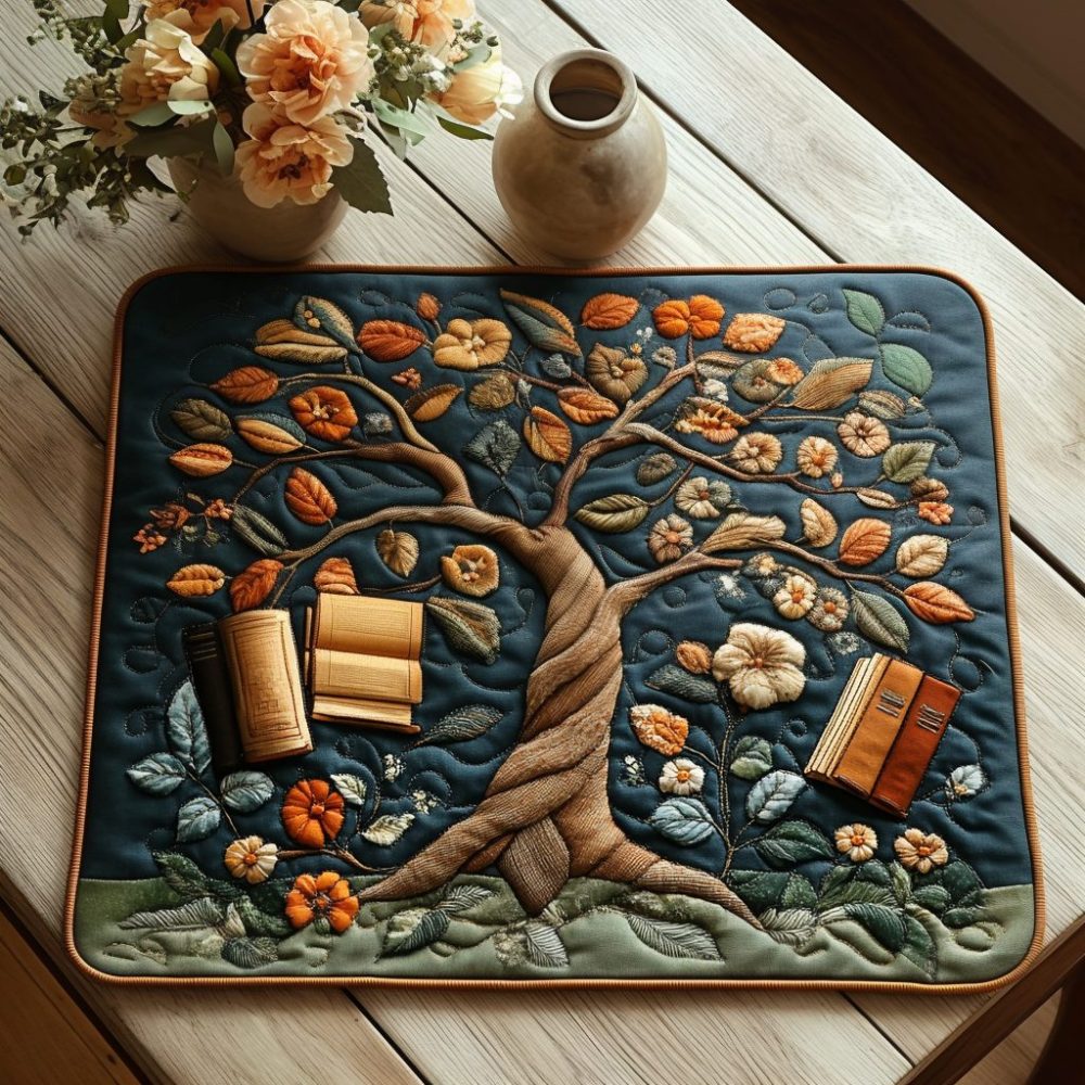 Celebrate reading with the Realistic Tree of Books quilted placemat featuring a detailed literary tree print on soft cotton. Dense quilting provides insulation and surface protection while enhancing your table with artistic flair. Machine-washable and fade-resistant for lasting enjoyment—perfect for book club gatherings and scholar-inspired décor.