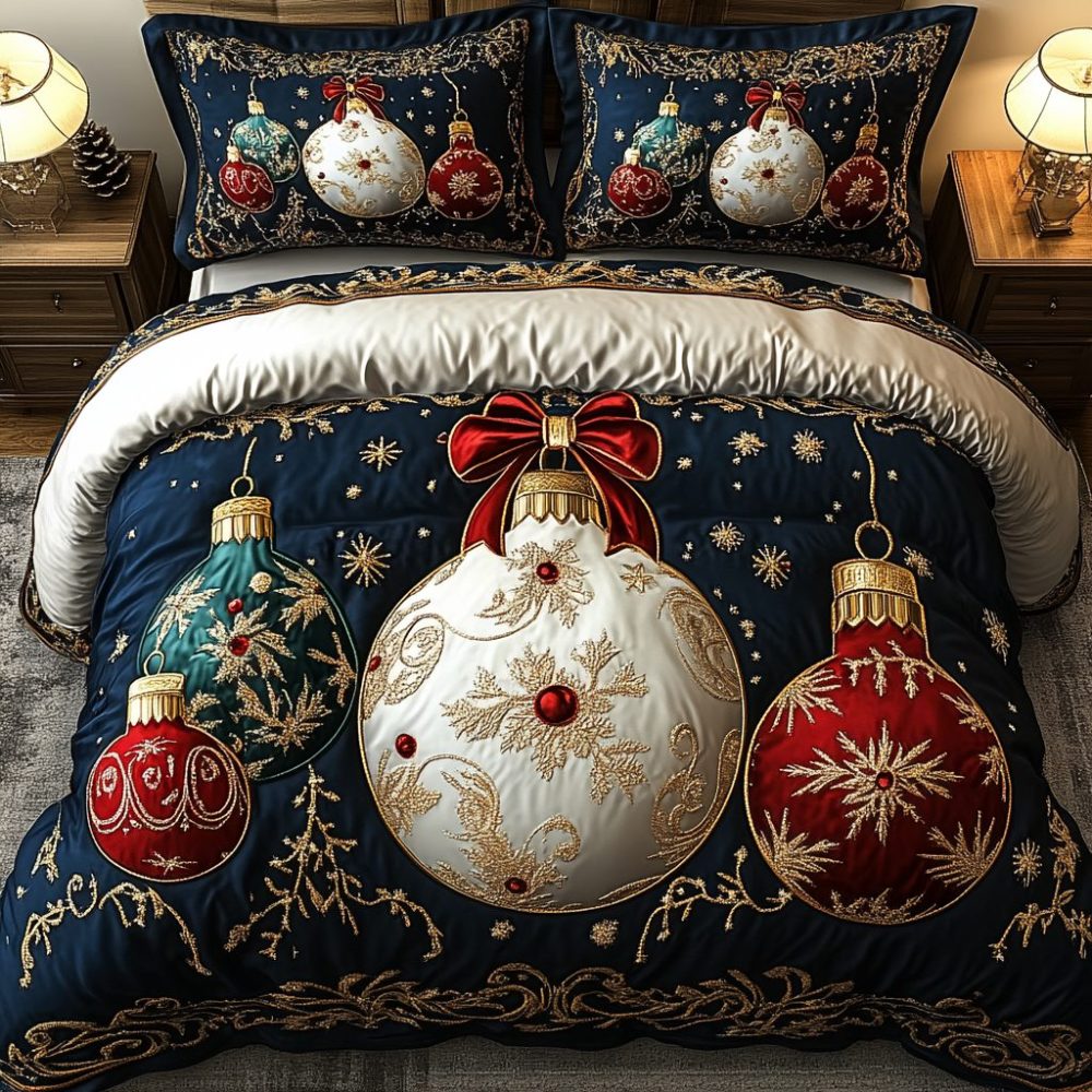 Regal Holiday Ornament 3-Piece Quilted Bedding Set