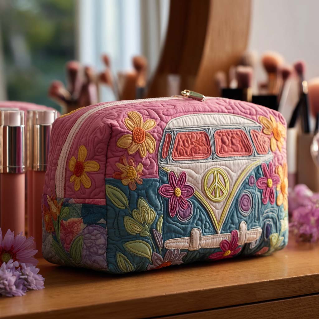 Retro Bloom Journey Quilted Makeup Bag