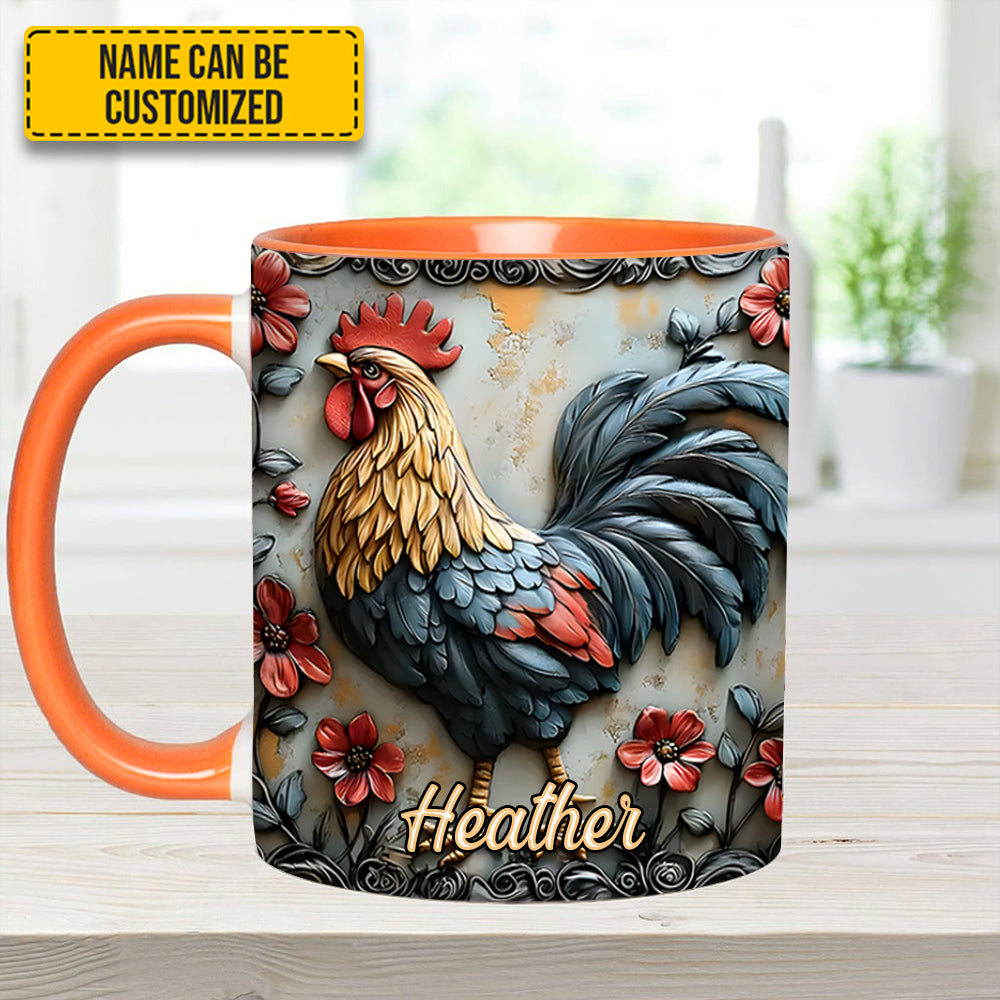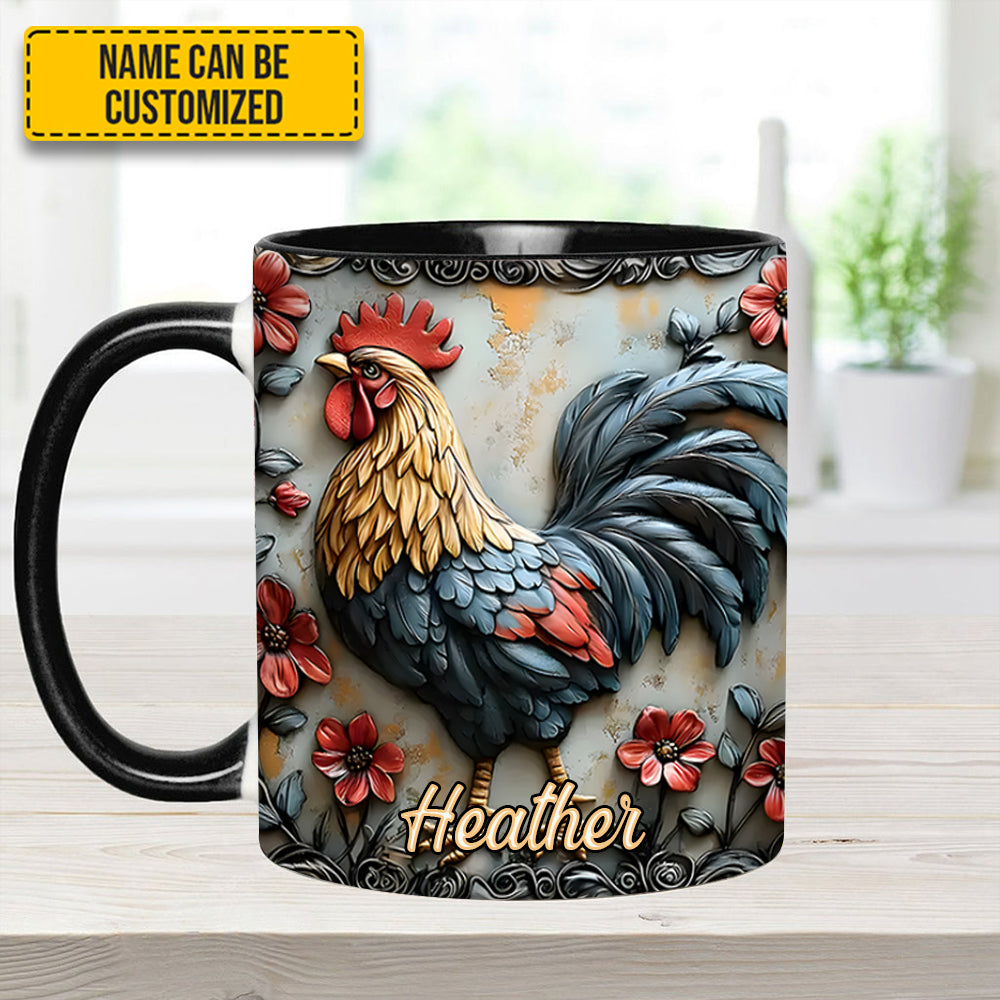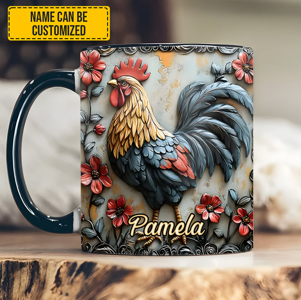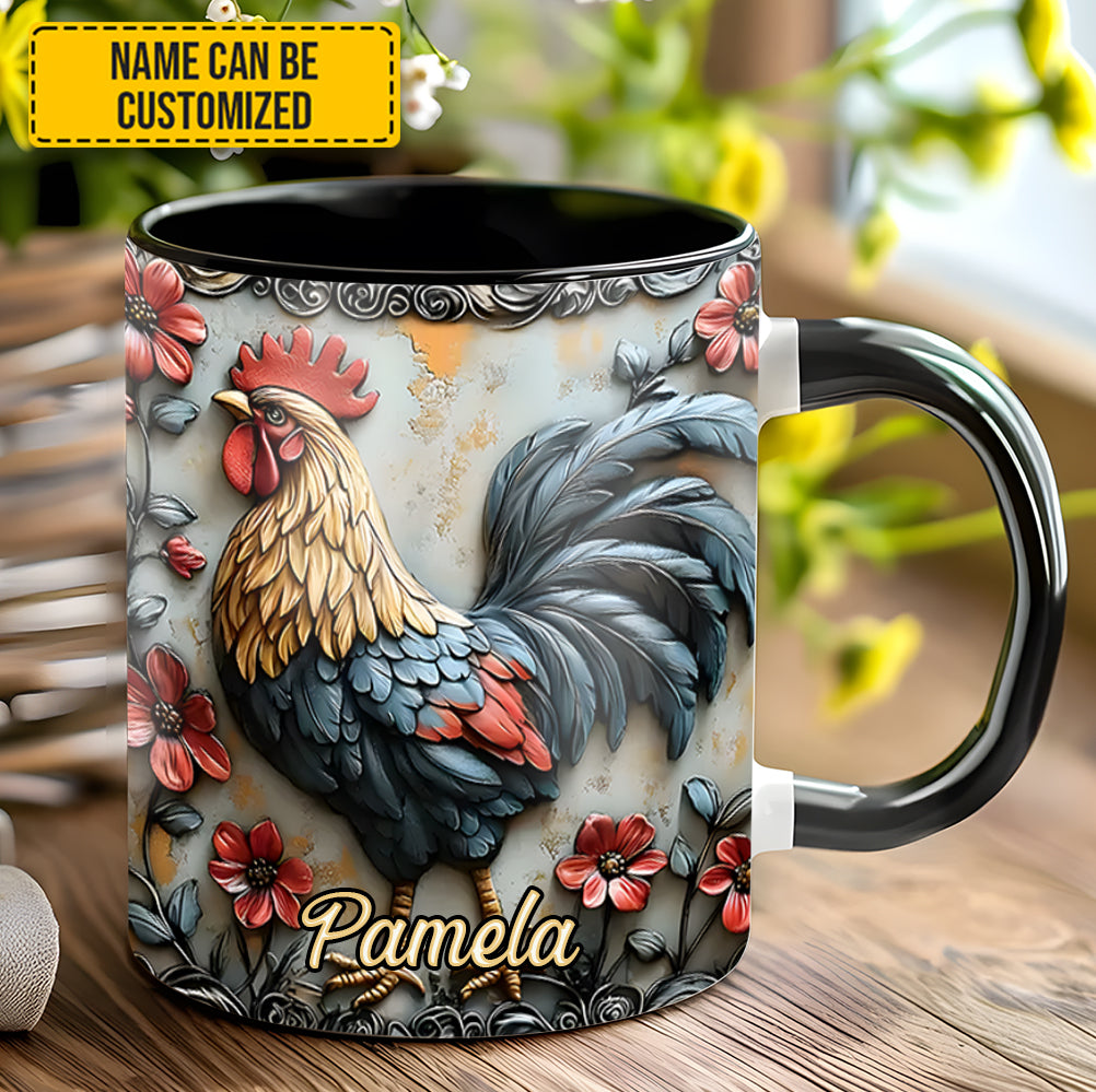 Rooster And Vibrant Flowers – Personalized Chicken Accent Mug