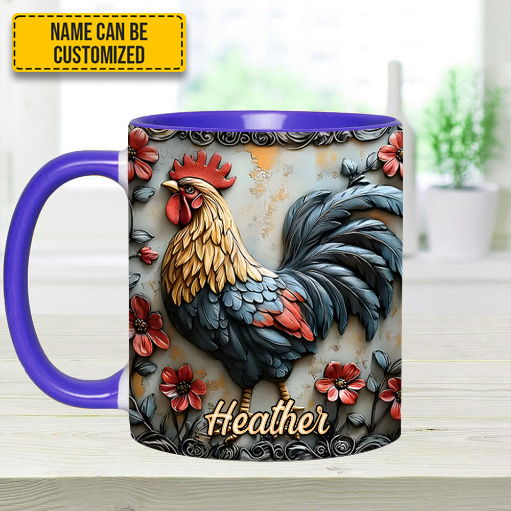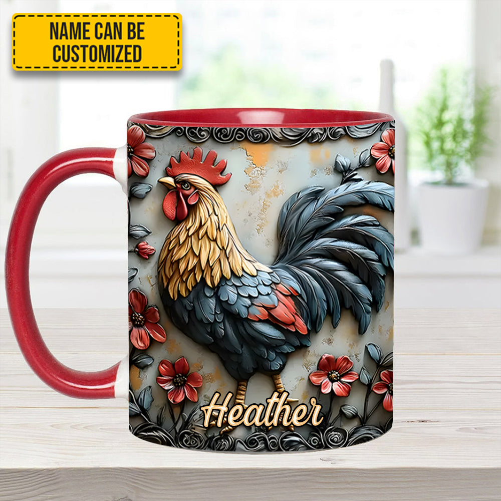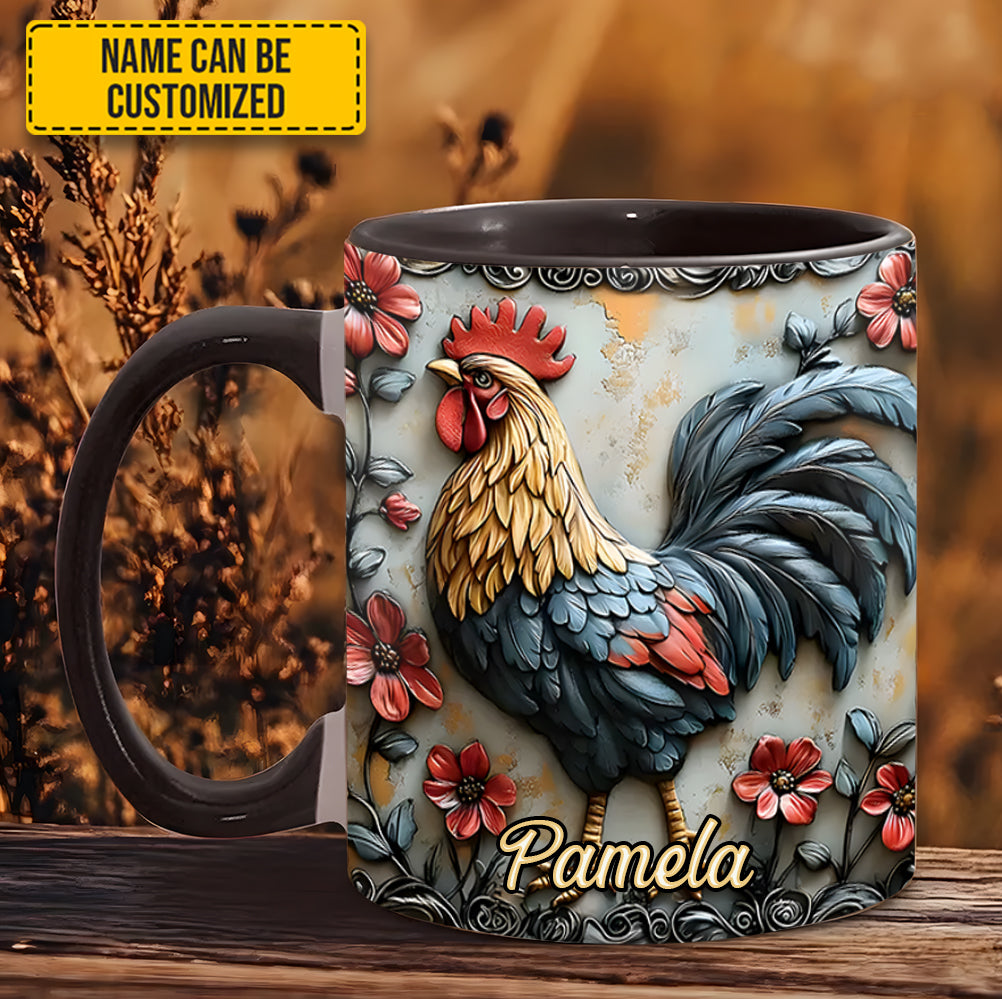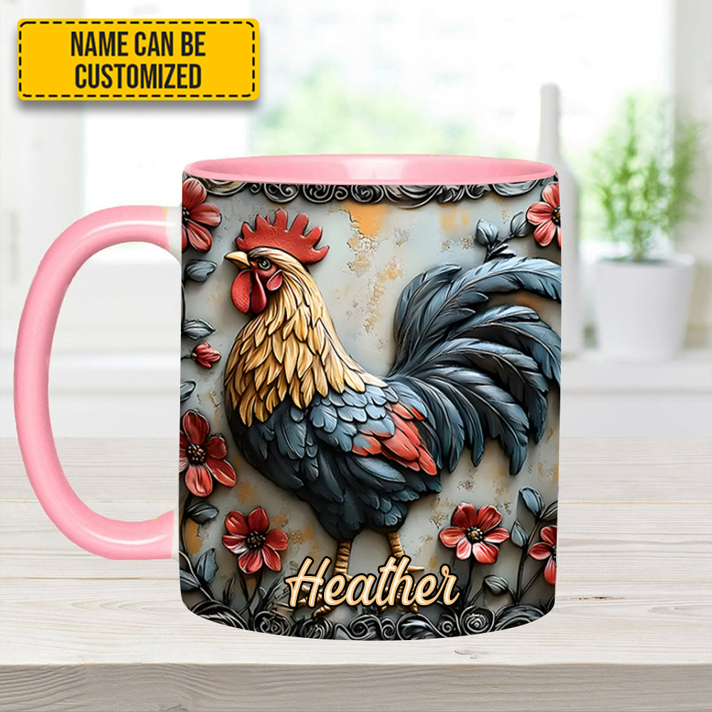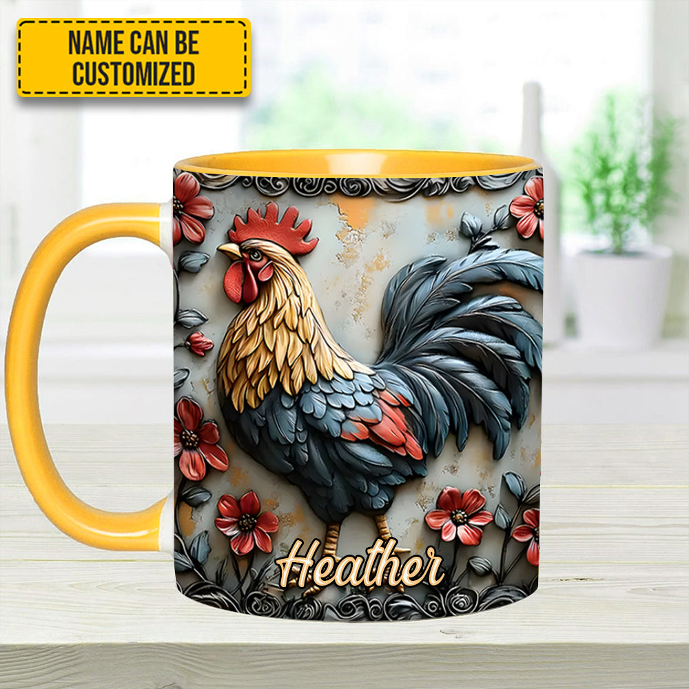 Rooster And Vibrant Flowers – Personalized Chicken Accent Mug