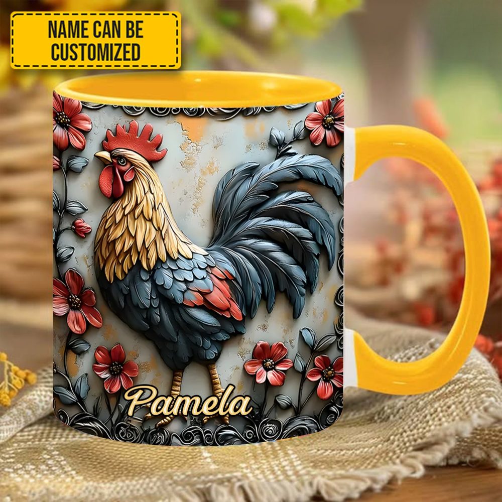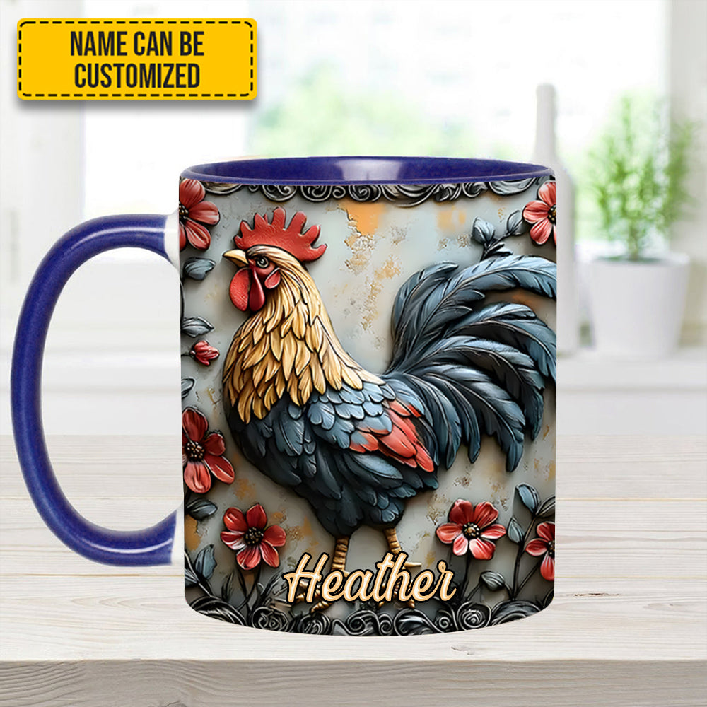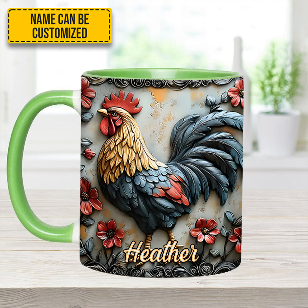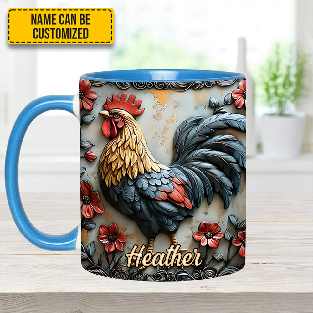 Rooster And Vibrant Flowers – Personalized Chicken Accent Mug