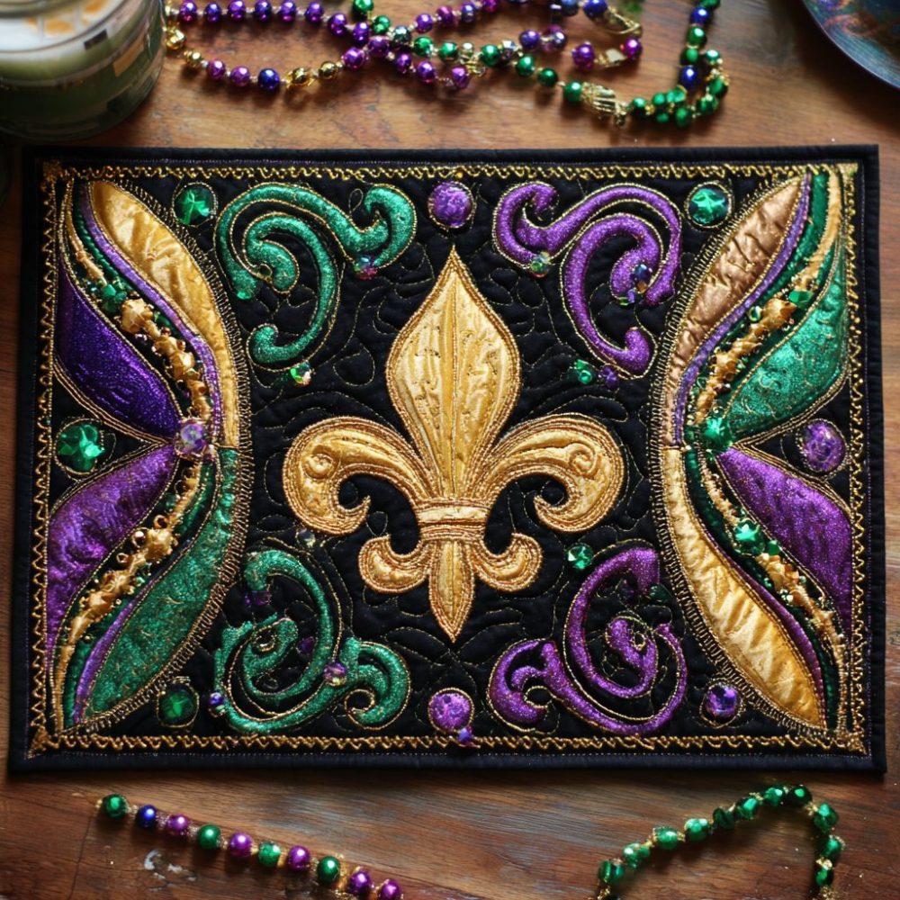 Make every meal a celebration with the Royal Carnival quilted placemat, featuring a bold festival-inspired print and vibrant colors. Durable cotton construction and dense quilting resist daily wear while protecting tabletops from heat and spills. Great for festive gatherings, parties, or any time you want a lively table setting. Reversible and machine washable for easy styling and maintenance. Approx. 13″ x 19″ (33 x 48 cm).