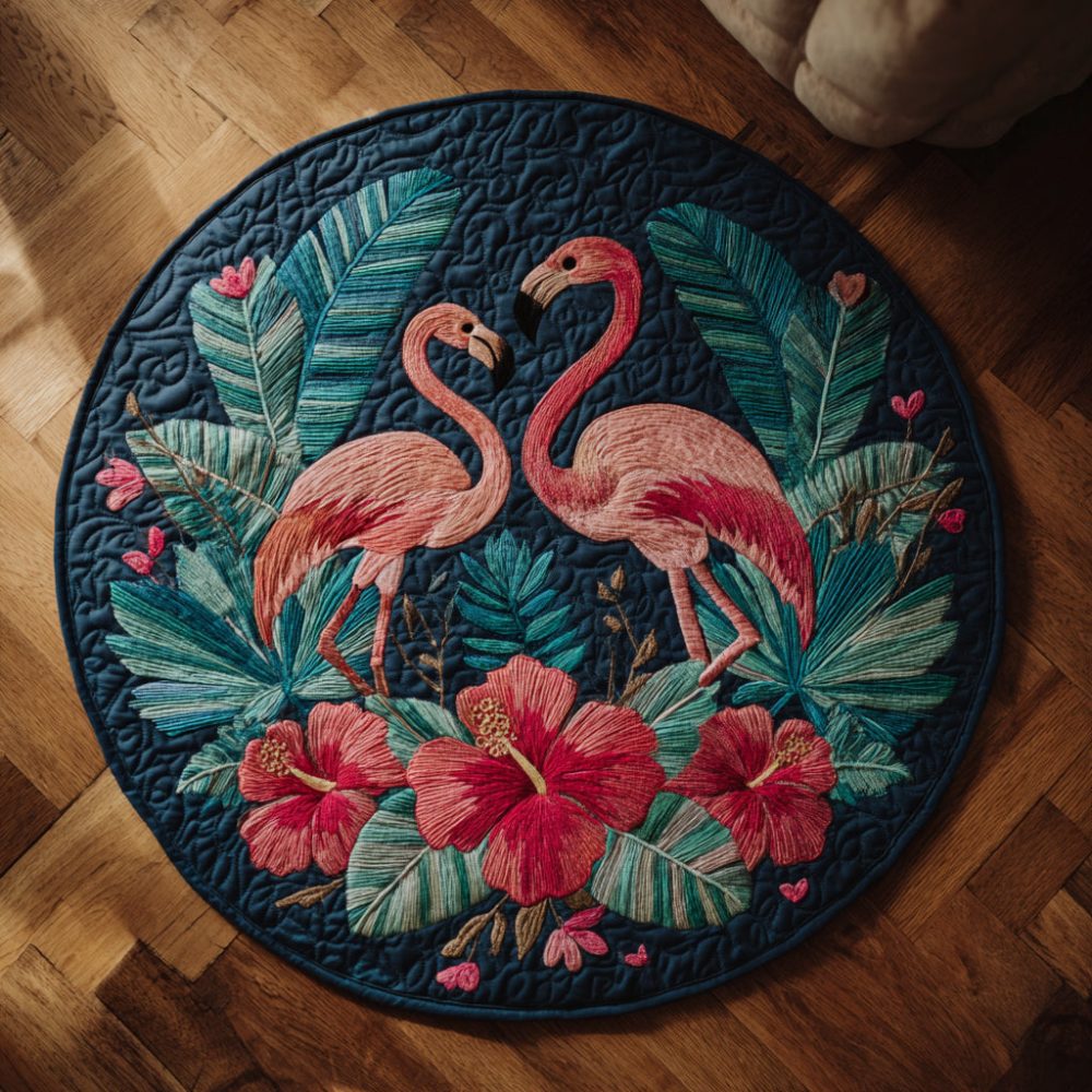 Royal Flamingo Duo Quilted Round Mat