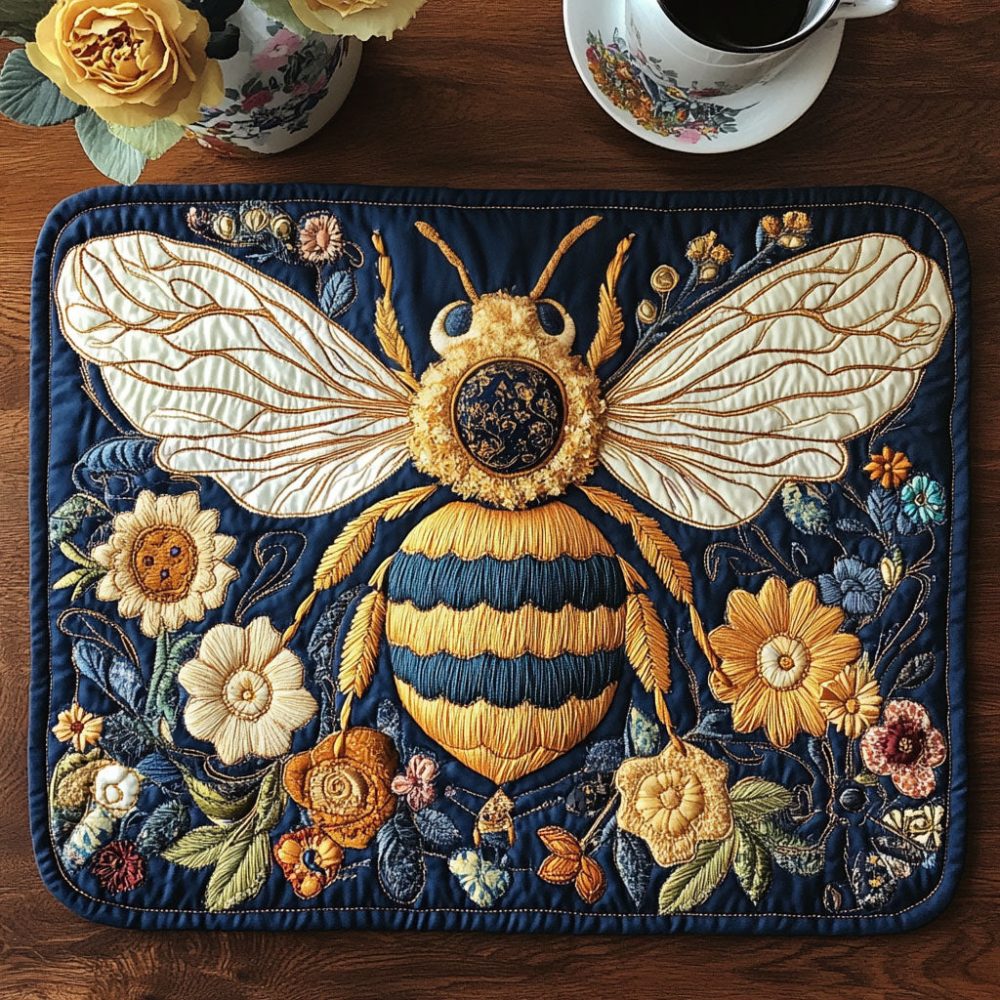 royal honeybee placemat, bee crest placemat, gold accent placemat, quilted reversible placemat, premium table mat, washable cotton placemat