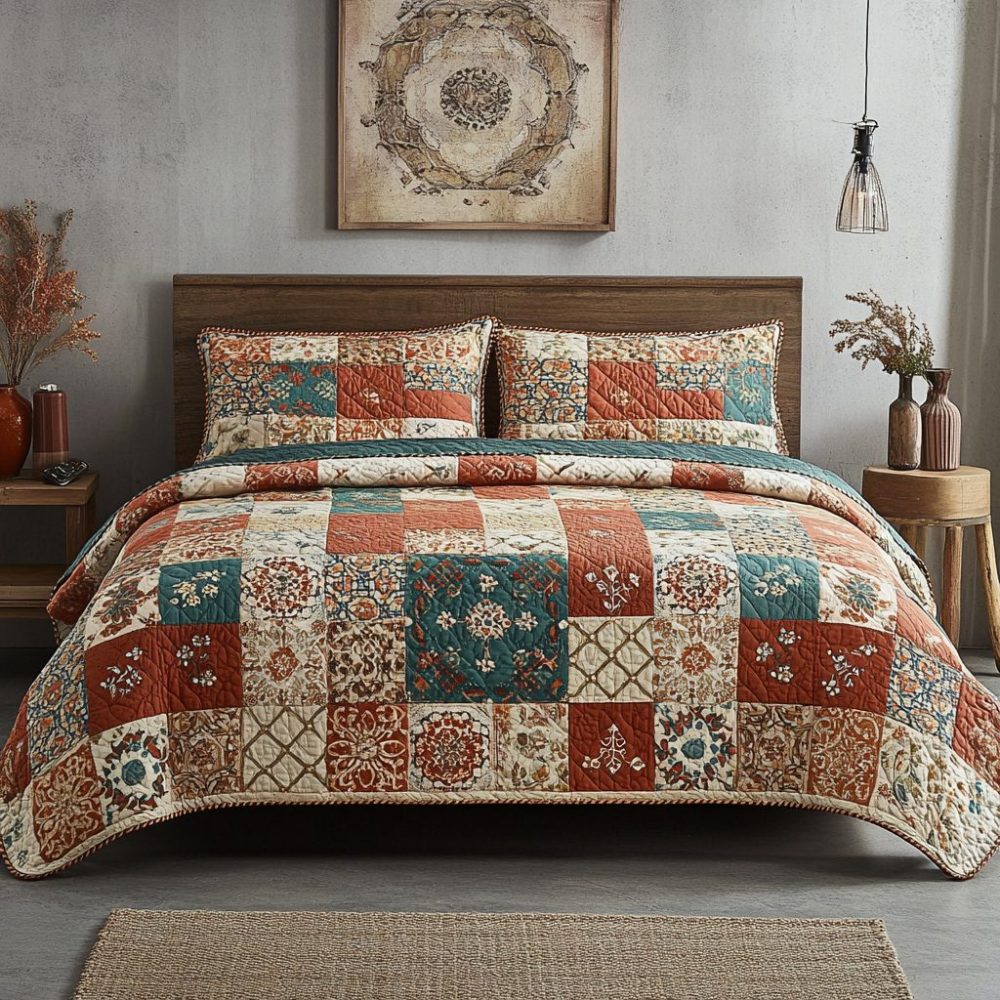Rustic Autumn Patchwork 3-Piece Quilted Bedding Set