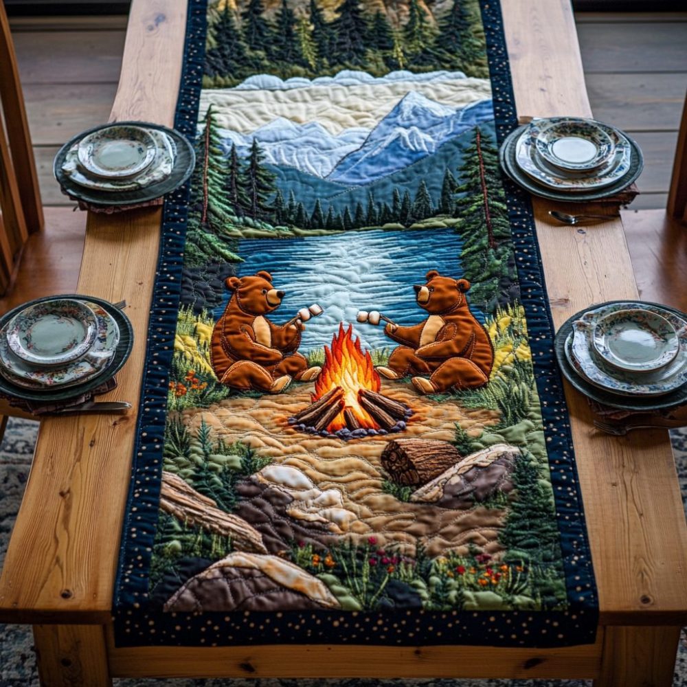 Rustic Escape Bear Quilted Table Runner