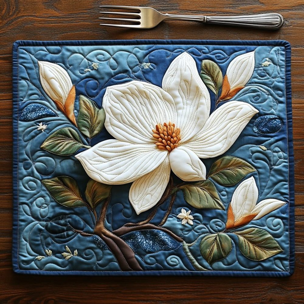 Rustic Magnolia Quilted Placemats – Southern Charm Floral Table Protectors, Cotton Blend Dining Mats, Easy Care