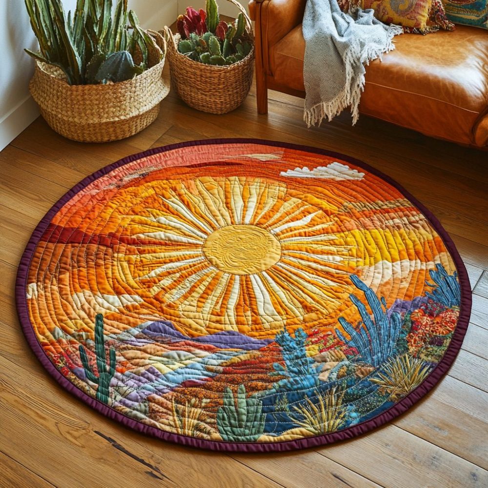 Rustic Sun Quilted Round Mat