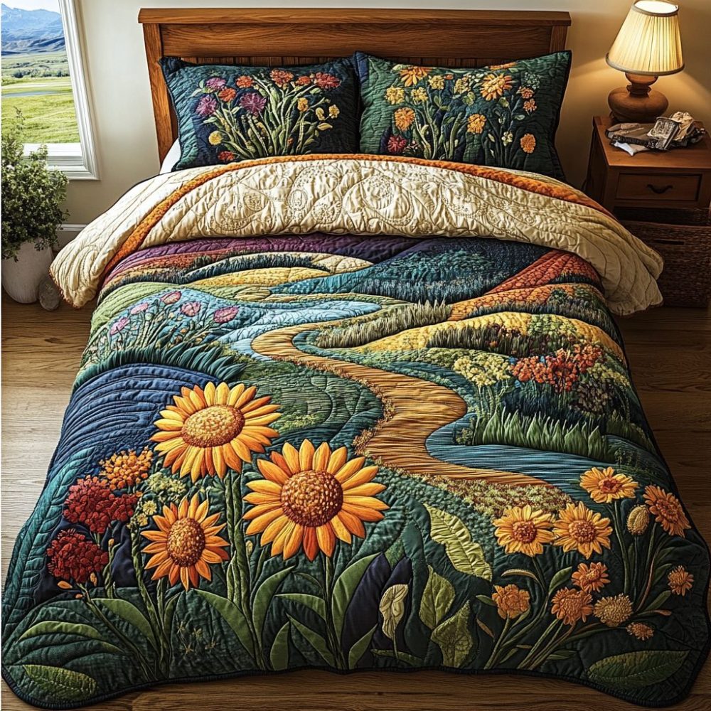 Rustic Sunflower 3-Piece Quilted Bedding Set