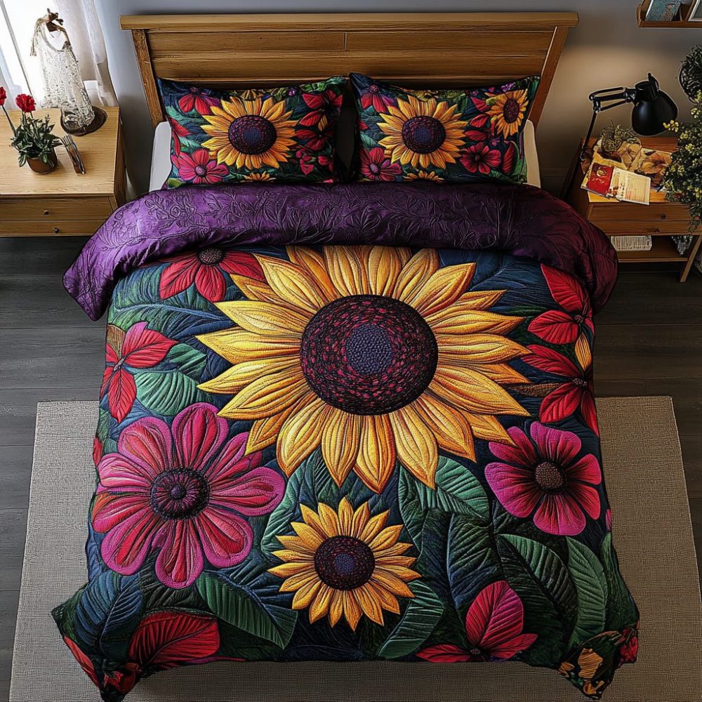 Rustic Sunflower 3-Piece Quilted Bedding Set