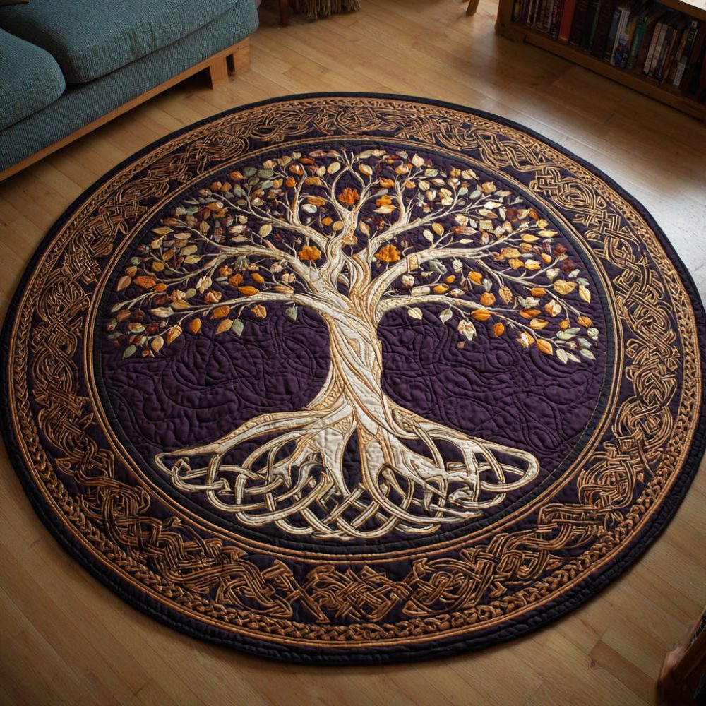 Rustic Tree Of Life Quilted Round Mat