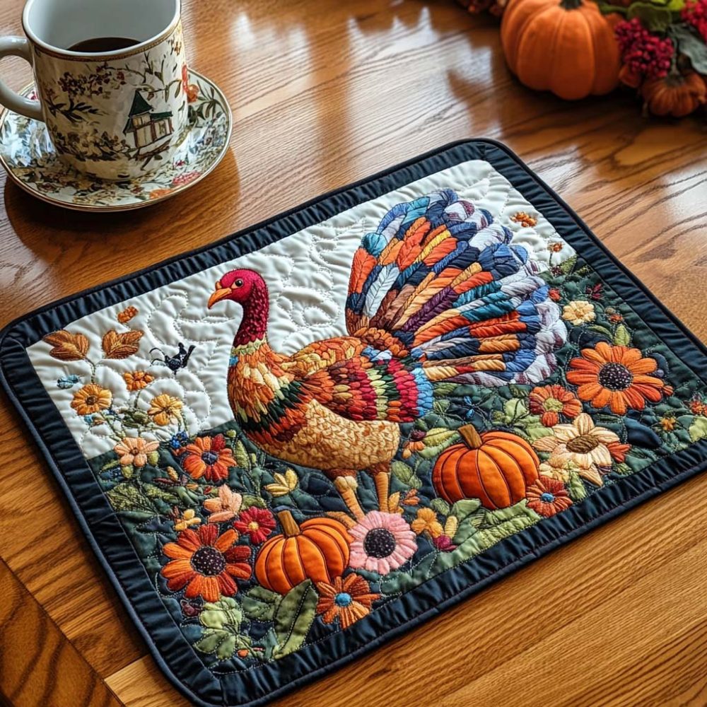 rustic turkey placemat, country table decor, quilted placemat, Thanksgiving placemat, machine washable, cotton padding, fall centerpiece accessory