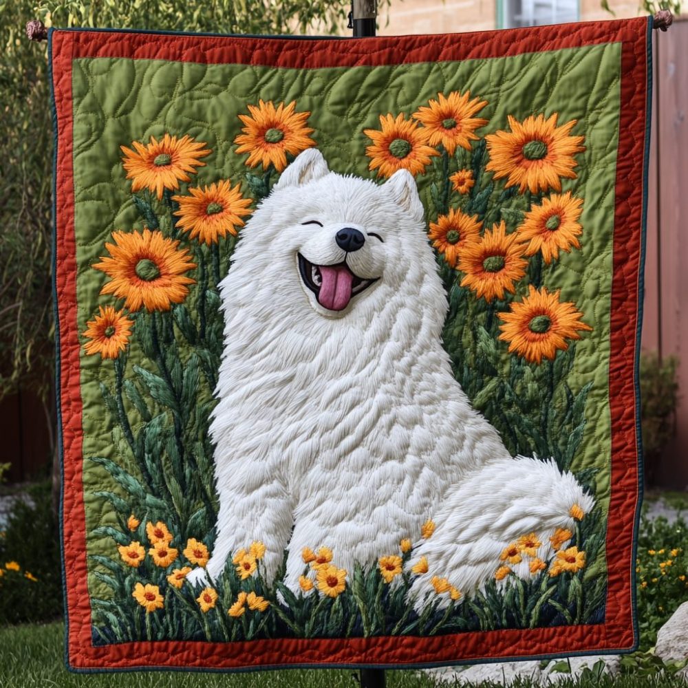 Samoyed Snowbound Quilted Blanket