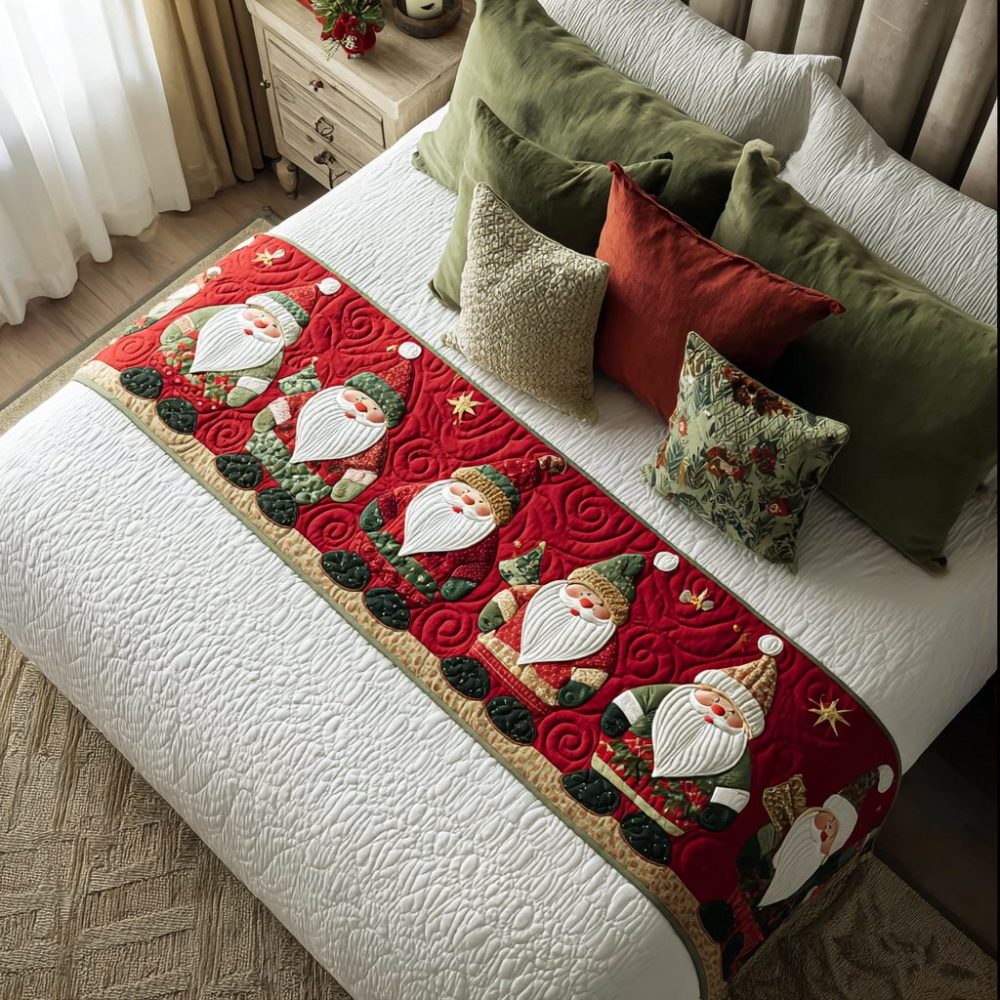 Santa bed runner, Christmas runner, quilted holiday bedding, festive bed decor, Santa decor, holiday throw accent, seasonal bedroom decor, machine washable