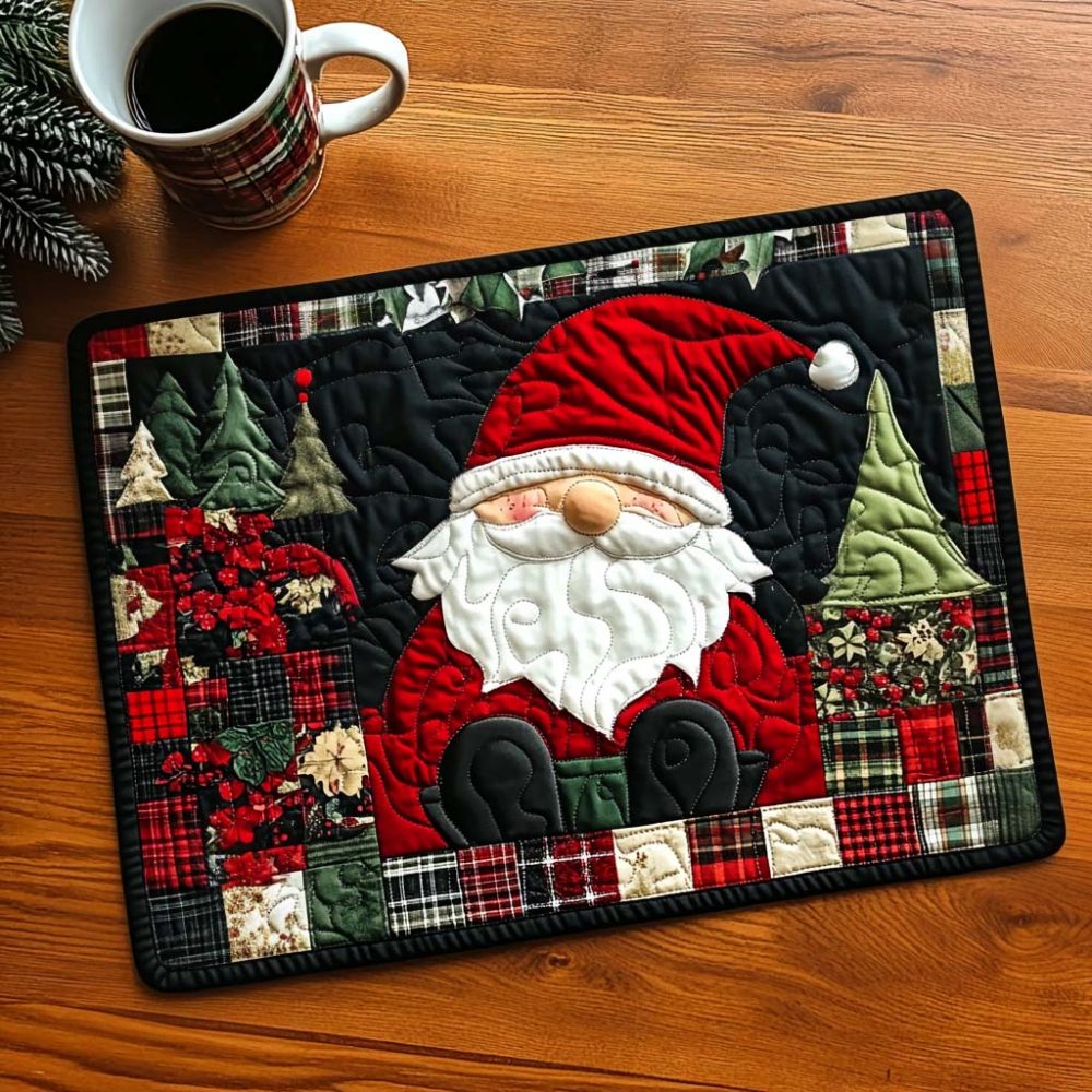 Santa placemat,Christmas placemat,quilted holiday mat,festive table protector,holiday table decor,insulated placemat,machine washable placemat,seasonal dining
