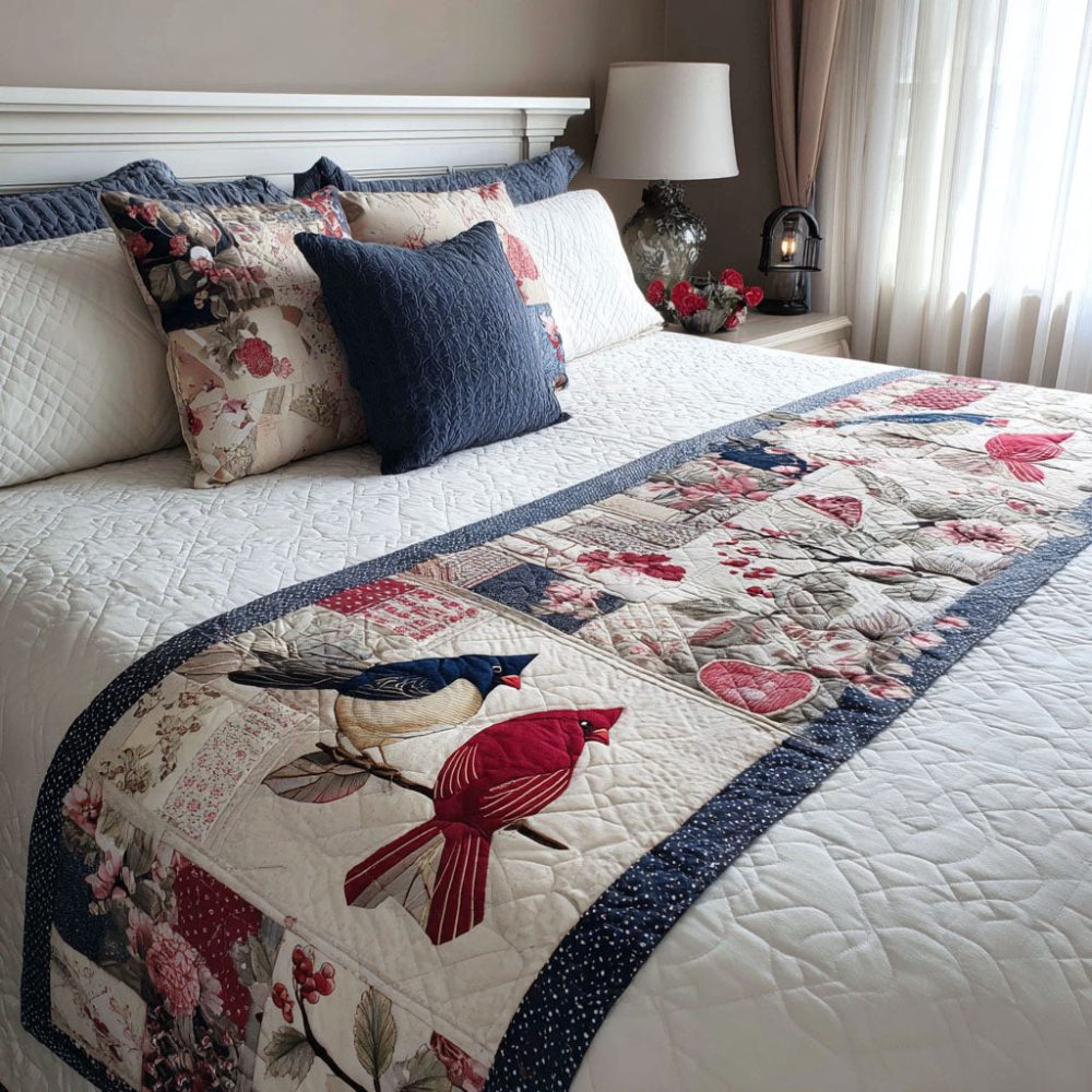 Scarlet Serenade Quilted Bed Runner – Bold Red Floral Accent Runner For Queen & King Beds, Decorative Bedroom Throw