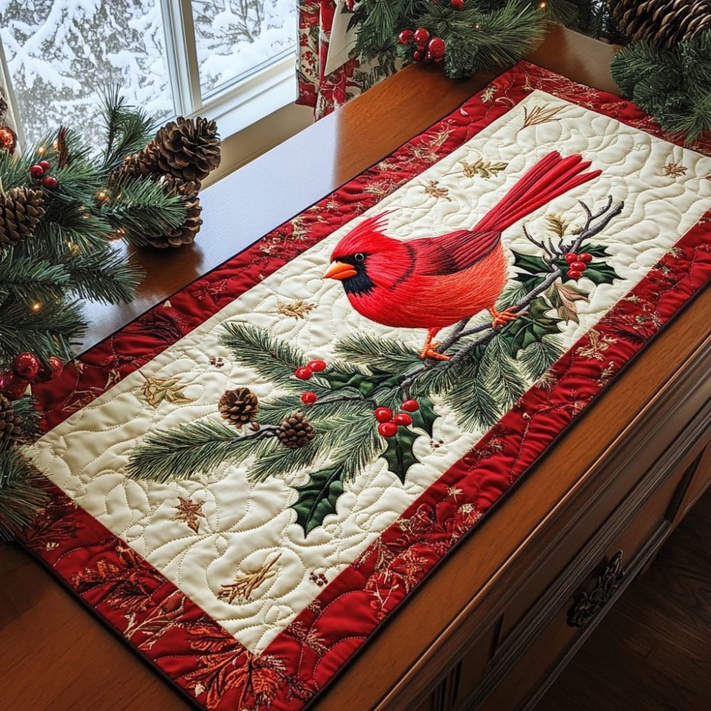 Scarlet Serenade Quilted Table Runner