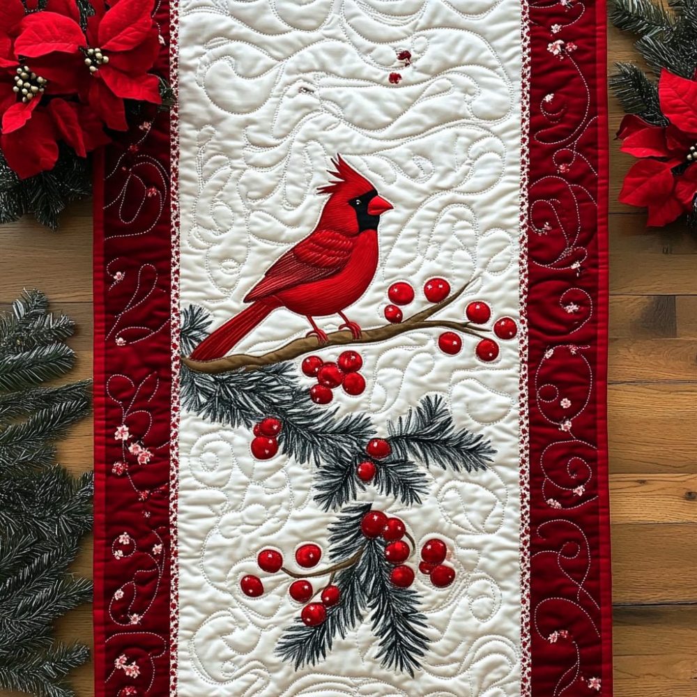 Scarlet Winter Watch Quilted Table Runner
