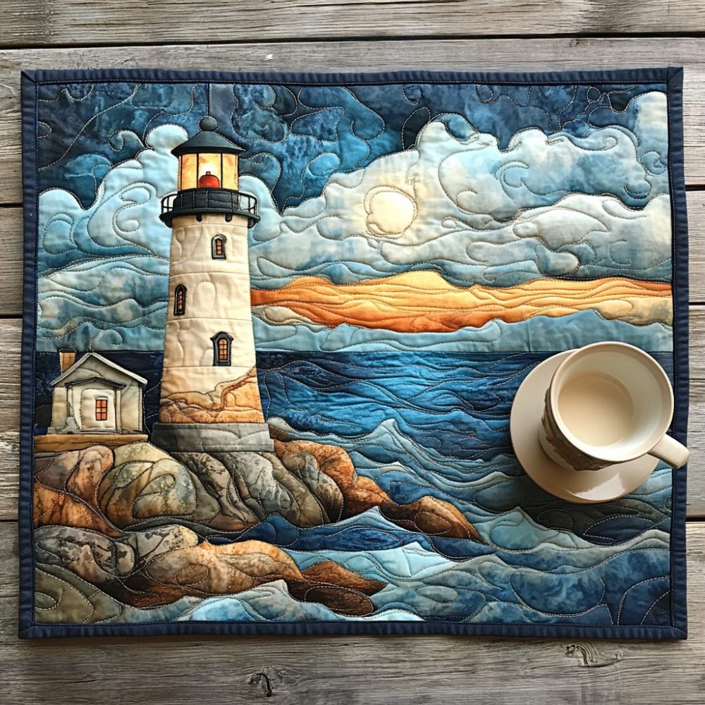 sea lantern placemat,nautical placemat,coastal placemat,quilted table mat,cotton-blend placemat,heat resistant placemat,machine washable